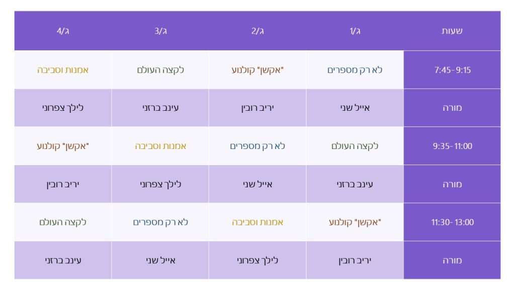 מערכת שעות - שכבה ג' - סמסטר ב'