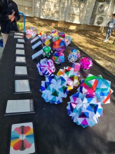 בתהליך יצירתי אישי, כל אחת ואחד, תכננו, דמיינו, חישבו זוויות, קיפלנו ויצרנו גופים גיאומטריים מרשימים. בהנחייתה של האמנית מיטל קוממי, חקרנו ולמדנו כיצד דרך חמשת הגופים האפלטוניים והבנת זוויות לעומק